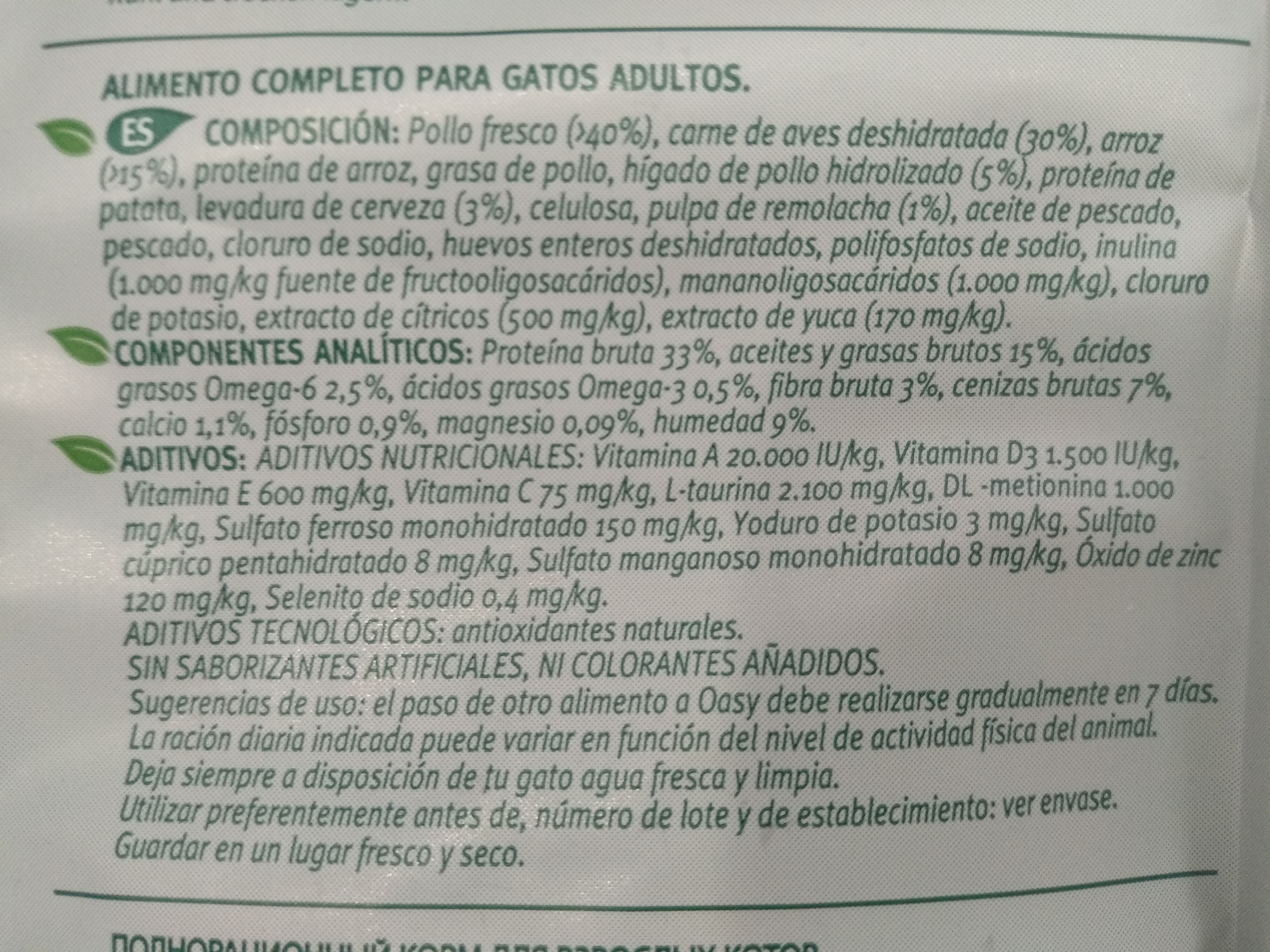 Oasy Adult Seteriliced Pollo 1,5kg: